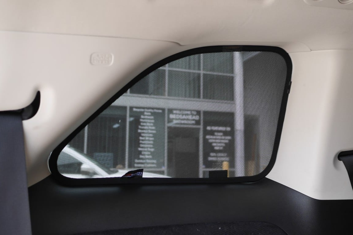 Note: Our custom sun shades block out a significant amount of light and UV rays that enter from the front windscreen, however due to the angle of the front windscreen and additional sensors or different mirror shapes/sizes available for different models, there may be slight gaps around your rear-view mirror or sides to allow the sun shade to fit.