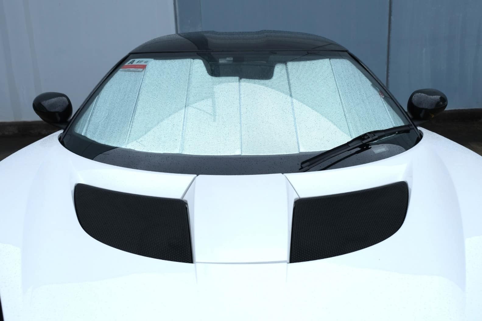 Note: Our custom sun shades block out a significant amount of light and UV rays that enter from the front windscreen, however due to the angle of the front windscreen and additional sensors or different mirror shapes/sizes available for different models, there may be slight gaps around your rear-view mirror or sides to allow the sun shade to fit.