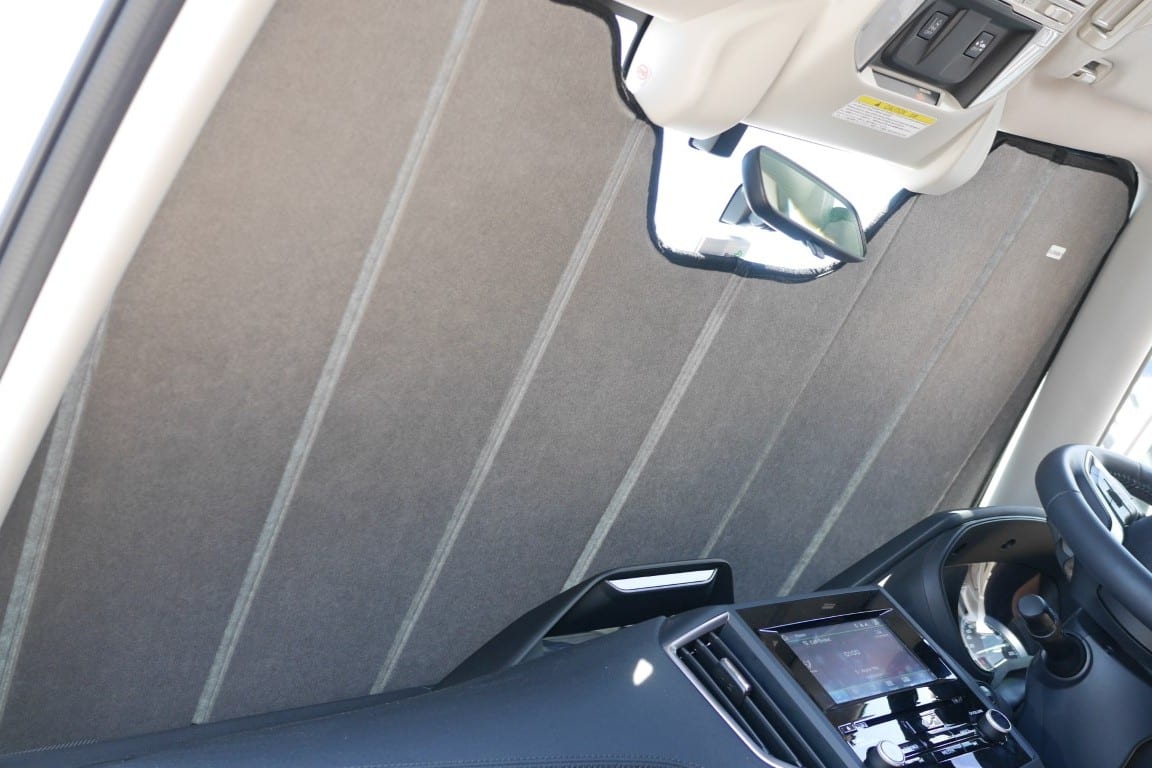 Note: Our custom sun shades block out a significant amount of light and UV rays that enter from the front windscreen, however due to the angle of the front windscreen and additional sensors or different mirror shapes/sizes available for different models, there may be slight gaps around your rear-view mirror or sides to allow the sun shade to fit.