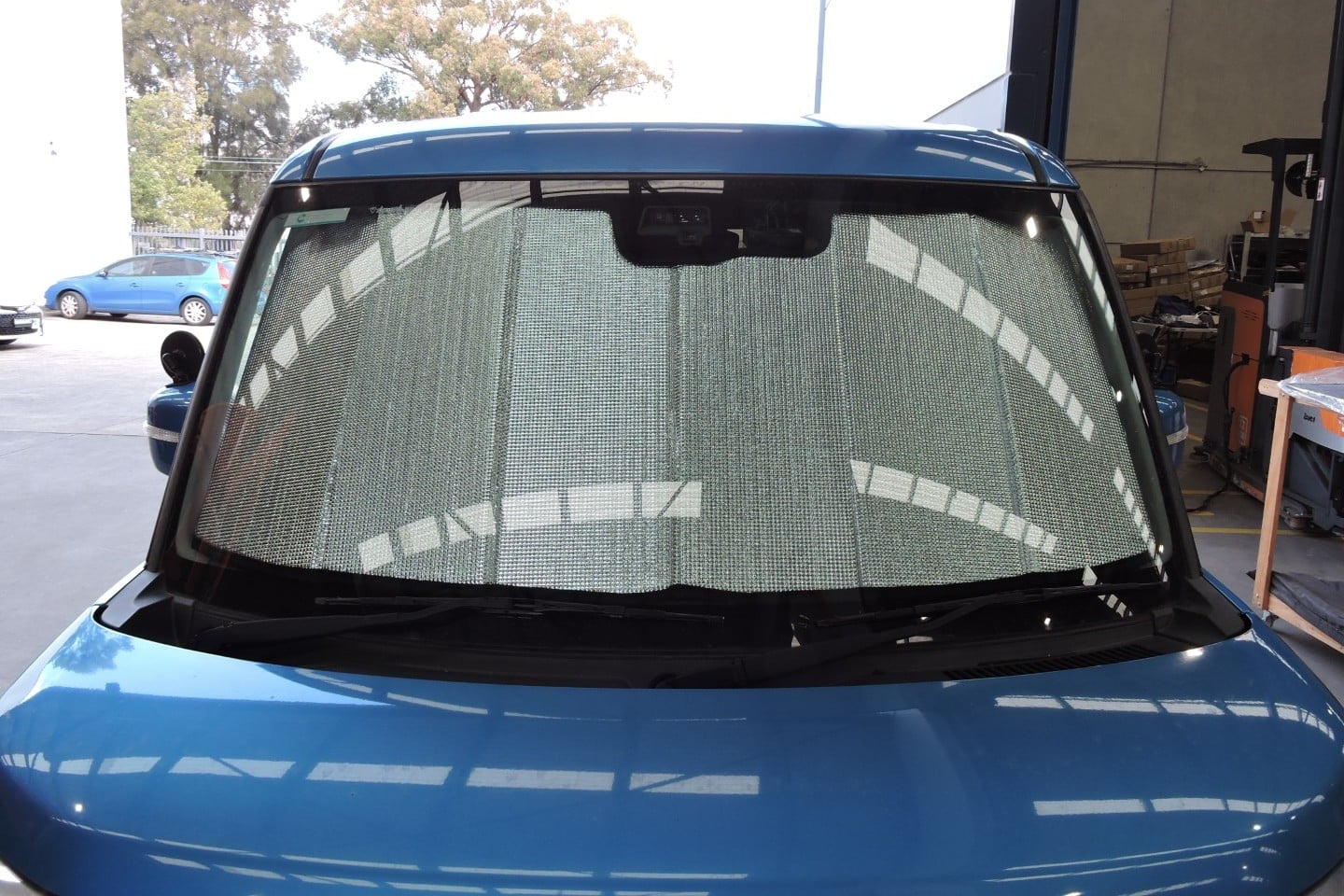 Note: Our custom sun shades block out a significant amount of light and UV rays that enter from the front windscreen, however due to the angle of the front windscreen and additional sensors or different mirror shapes/sizes available for different models, there may be slight gaps around your rear-view mirror or sides to allow the sun shade to fit.